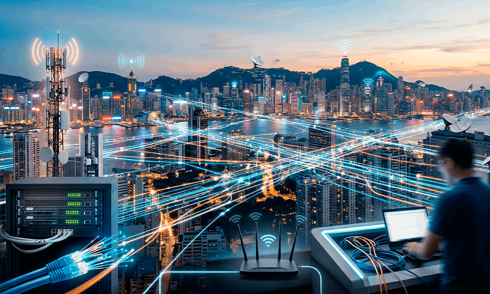 Diseñamos e implementamos arquitecturas de red robustas basadas en tecnologías de alta velocidad como Wi-Fi 7 y redes Mesh de cobertura total para eliminar puntos muertos. Optimizamos tu infraestructura de conectividad mediante cableado estructurado certificado y gestión inteligente de ancho de banda, garantizando una navegación fluida, estable y segura que soporta sin interrupciones el trabajo colaborativo en la nube y las videoconferencias en ultra alta definición.